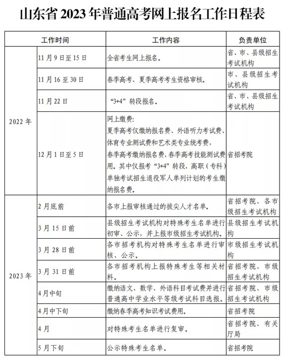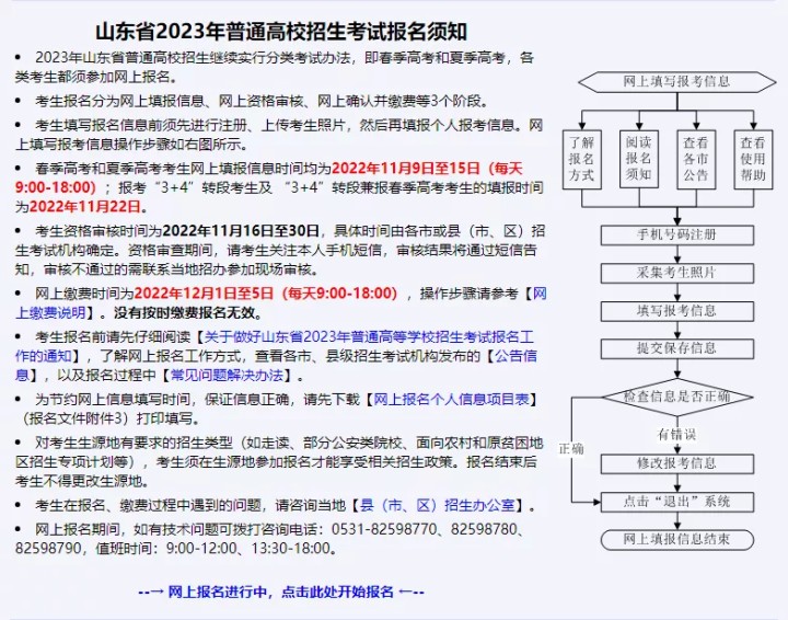 山東省高考報名自今日(2022年11月9日)開始進行。2023年高考報名分為網上填報信息、網上資格審核、網上確認并繳費等3個階段。
