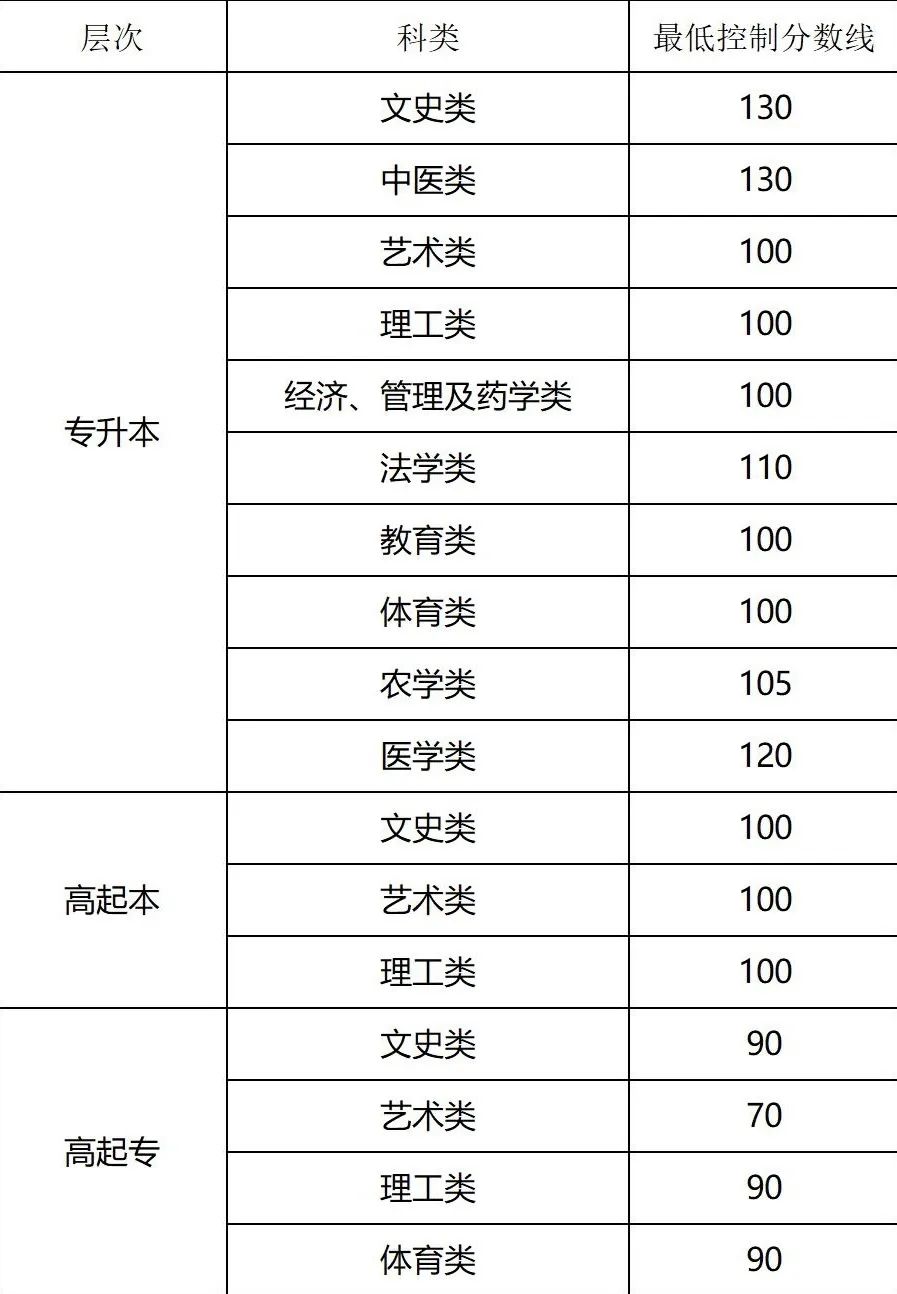 2023年山東成人高等學(xué)校招生錄取分?jǐn)?shù)線